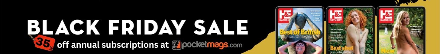 H&E has been in existence in various forms since 1902, according to research by the publisher. It is the oldest naturist magazine in the world, and is the leading monthly title aimed at naturists and all those who enjoy any aspects of their lifestyle without the restrictions of clothing. H&E originally stood for “health and efficiency”, the theory being that continued exposure to the sun and air, in combination with a good diet and regular exercise, was beneficial to health and made the body work more efficiently. Nowadays, naturism is more of a lifestyle choice with much less importance placed on the perfect body image – and more emphasis on travel, sunbathing, naked activities and, most of all, fun.