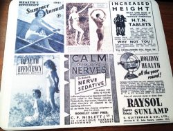 Christmas card exclusive to H&E naturist. Features 1960s black-and-white image of naked female skiers.