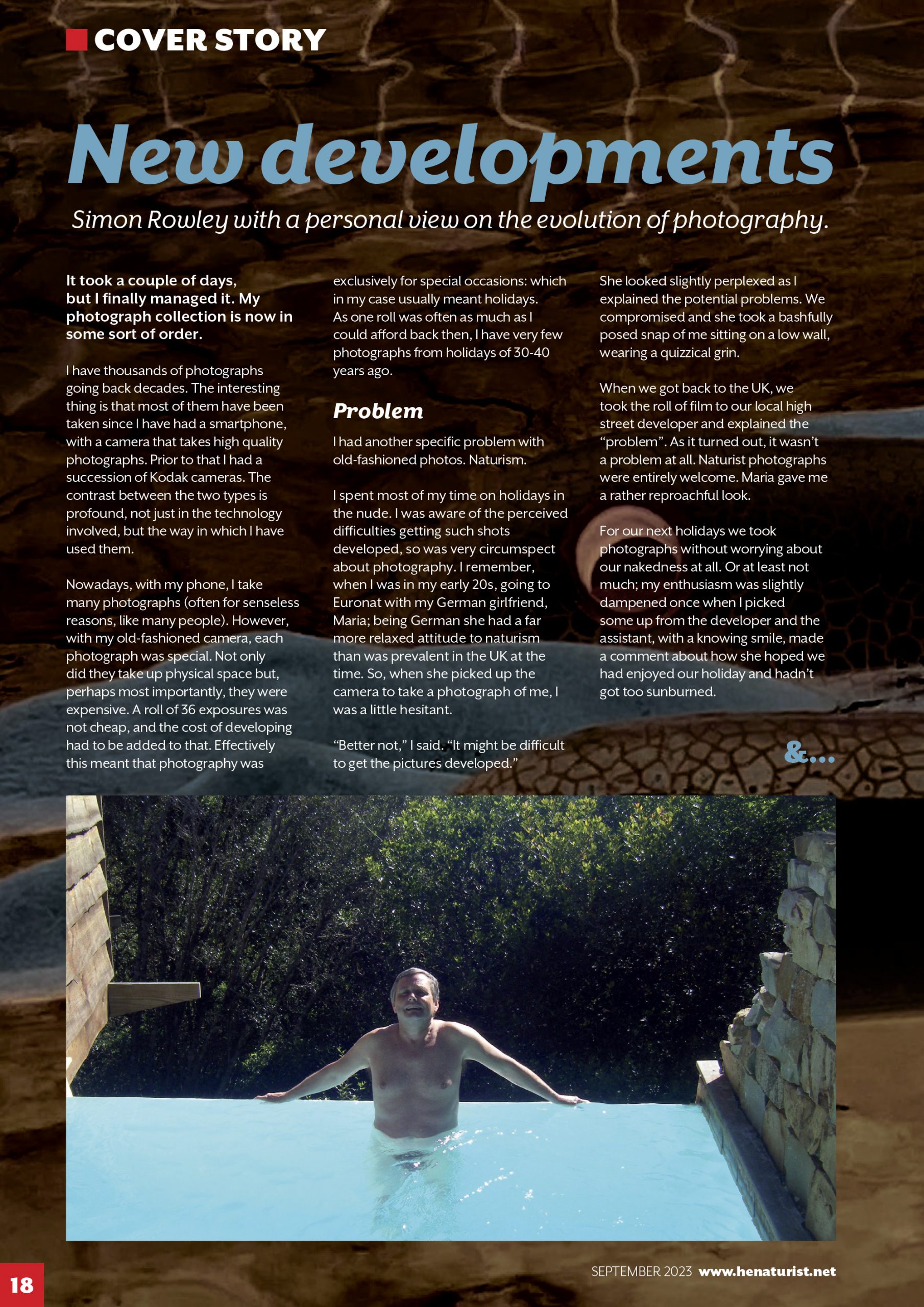 Appropriately enough, our cover story deals with the subject of changing times, and the impact of technology on the future of naturism – are things like AI and the internet a threat to the lifestyle or should they be embraced?